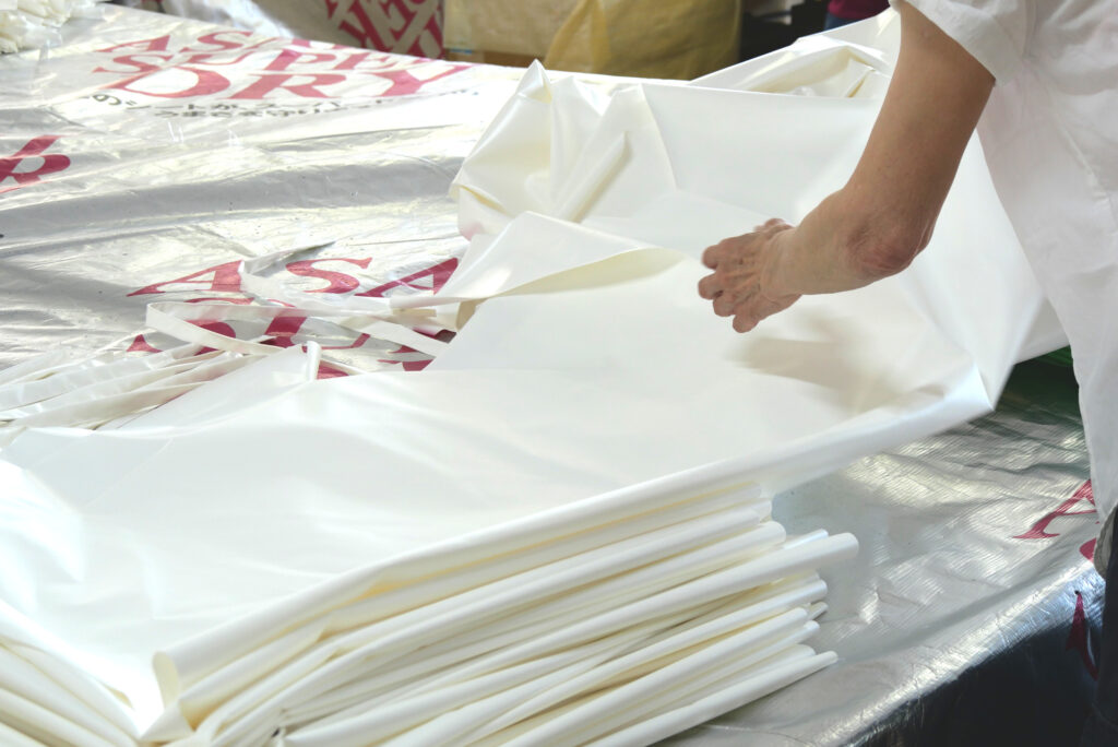 その他に縫製、高周波ウエルダー、熱プレス、検品作業、梱包作業、納品などの段取りや作業も併せてお願い致します。