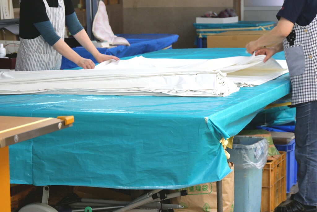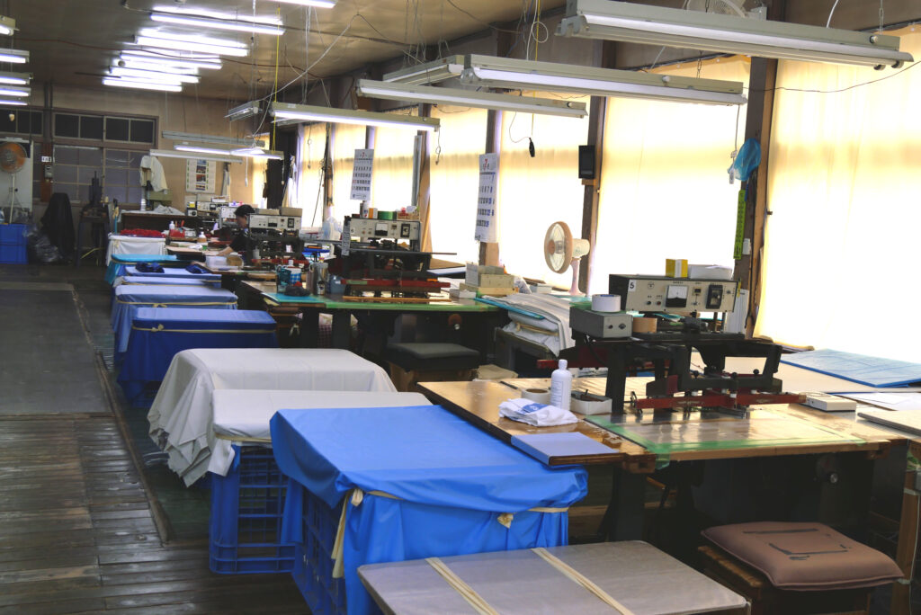 作業内容は、高周波ウエルダー加工(ビニールの溶着加工)、縫製加工、裁断補助、製品のたたみ作業、部品の取り付けなど手作業になります。